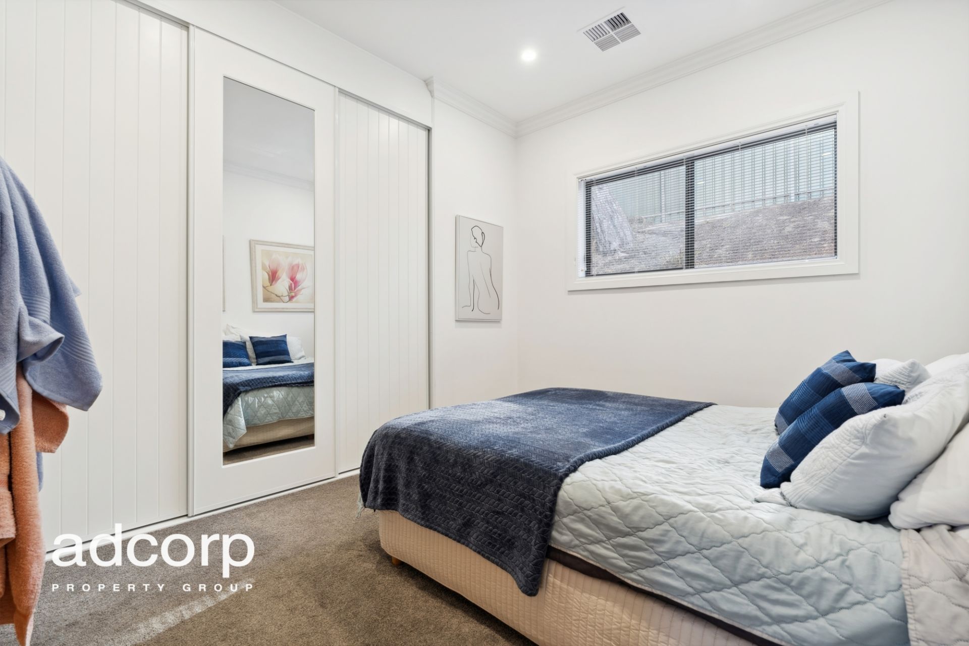 • Main bedroom with ensuite and sliding barn door, floor to ceiling tiles and mirrored built in robe