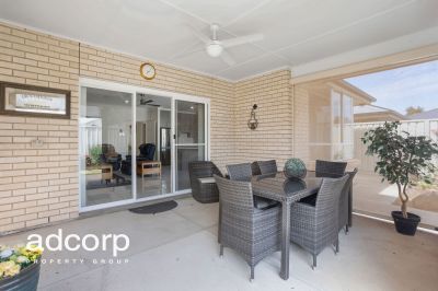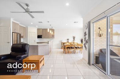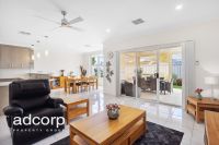 There is an open plan kitchen, formal dining area and large living space. The kitchen comes complete with plenty of bench and cupboard space, quality appliances and a walk in pantry. Ducted reverse cycle air-conditioning for all year-round comfort. Outside via the sliding glass doors into the undercover alfresco area fitted with café blinds ideal for all year round entertaining. Good sized large lined garden shed with power and lighting. Nice size grassed area, perfect and for both the kids and pets.