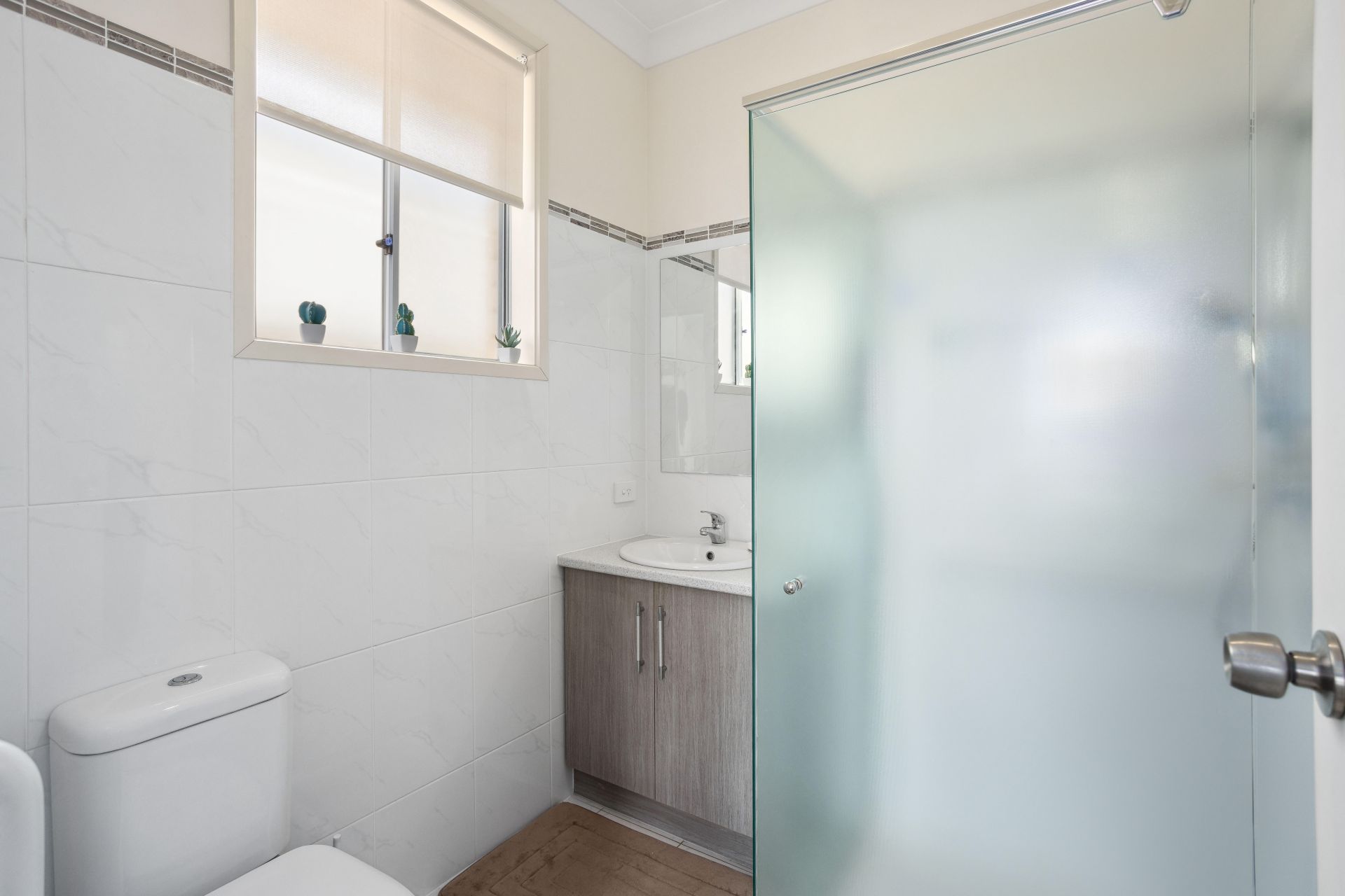 • White flooring tiles throughout